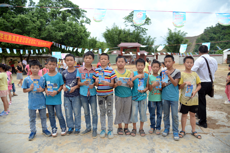 此次探訪,志愿者們提前了解到學(xué)校體育教學(xué)設(shè)施落后,辦公用品匱乏。當天,由李幽泉先生代表康芝紅臉蛋基金向三合村小學(xué)捐贈愛心專項基金和愛心藥箱。愛心基金將用于學(xué)校配置體育器材和辦公電腦等物資,為孩子們創(chuàng)造更好的運動條件,為老師們提供更好的辦公環(huán)境。隨后,在場的康芝高管人員一同為孩子們發(fā)放愛心禮包。