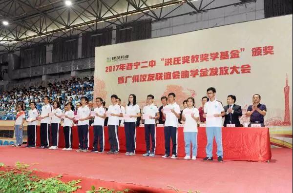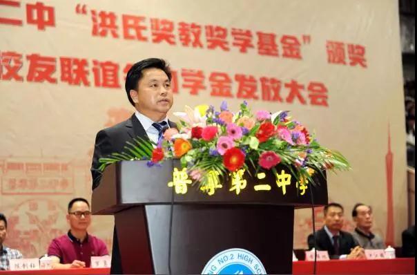 普寧二中“洪氏獎教獎學基金”由洪江游先生于2016年出資1000萬元設立,旨在獎勵先進,形成“尊師重教,興學育才”的良好風尚。
