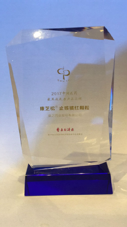 2017年11月7日,由國家食品藥品監督管理總局南方醫藥經濟研究所指導、醫藥經濟報主辦、標點信息(集團)承辦的“第二十九屆全國醫藥經濟信息發布會”在歷史文化名城江蘇常州隆重舉行。會上,康芝藥業的康芝松?止咳橘紅顆粒憑借快速的市場增長及良好的臨床治療價值,喜獲“2017中國醫藥最具成長力產品品牌”殊榮。