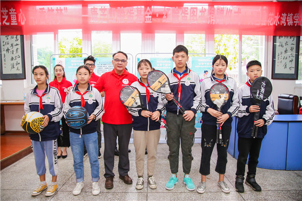 隨后,康芝藥業成都合作伙伴、人人康健品牌管理有限公司總經理李敏將配備了學生常用藥品和急救用品的愛心藥箱送到幸貴明校長手中。此次活動,四川區域合作伙伴還為孩子們帶去了一批愛心物資,此外,與康芝合作多年的診所給孩子們捐贈了多個籃球及多副羽毛球拍,以更好豐富孩子們的課余生活。