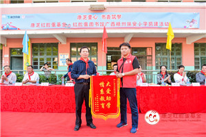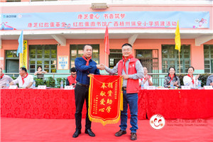 為表謝意,保安小學代表們給康芝藥業回贈了自己親手所作的手工作品,保安小學校長將兩面寫有“捐資助學 奉獻愛心”、“大愛助學情系教育”的錦旗分別回贈給康芝藥業及康芝藥業梧州代理商團隊。
