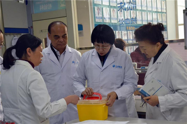 彭教授從醫療器械回收、清洗、消毒滅菌、無菌物品存放環節到拖把、抹布的使用清洗情況,都一一檢查,還通過現場詢問科室主任、醫生、護士、后勤人員,了解醫院感染管理流程、制度的落實情況,并對九洲醫院的院感工作給予了極高的評價。