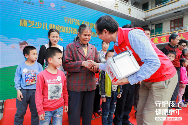 2019年,康芝藥業積極響應國家脫貧攻堅及健康中國的號召,聯合大翔藥業等知名藥企,發揮藥企本身能量,通過康芝紅臉蛋基金為廣大少年兒童和家長普及兒童健康知識,開授“少兒健康常識和急救知識公益課堂”,并為孩子們和家庭配備一個少兒健康愛心藥箱,為孩子的健康成長保駕護航。