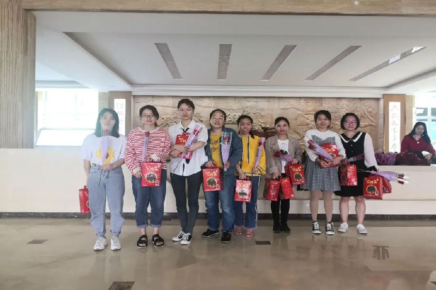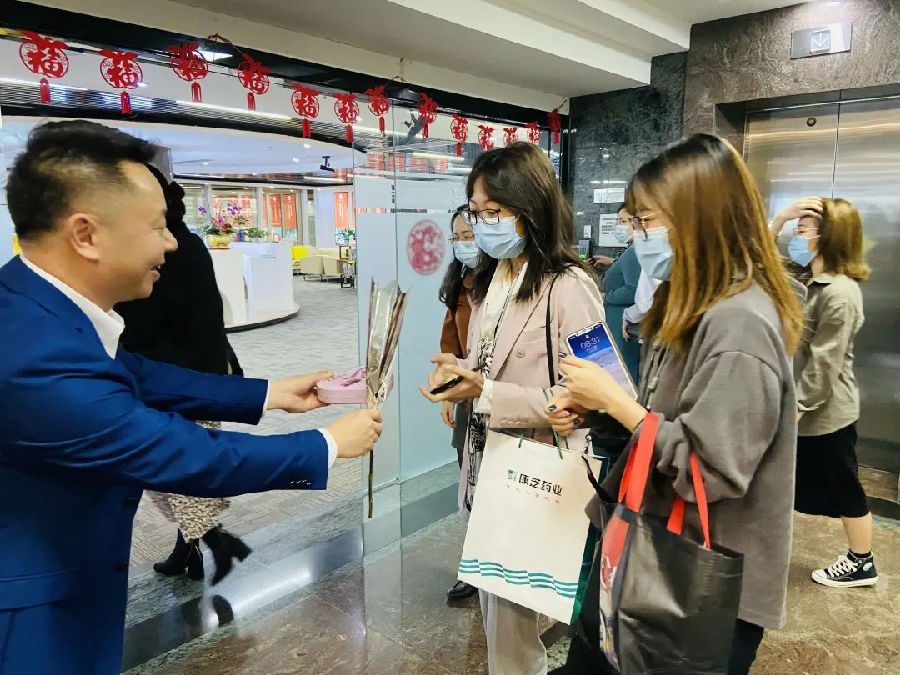 收到鮮花禮物的女神們一臉的歡喜,笑得特別開心。一位收到玫瑰的女員工開心地感慨道:“公司每年都記著,很感動,也很開心!”