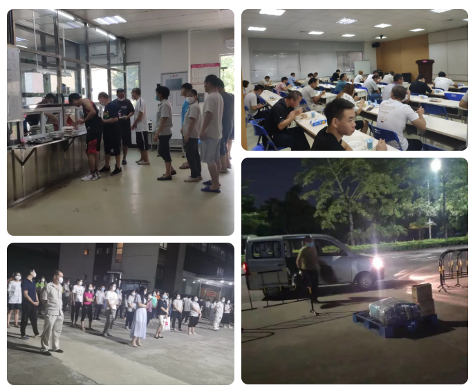 晚上7點,愛護生產基地全體員工正在有序進行核酸檢測中,行政部積極安排食堂廚房為每一位員工提供了營養晚餐。直至深夜,全部員工核酸檢測完畢。