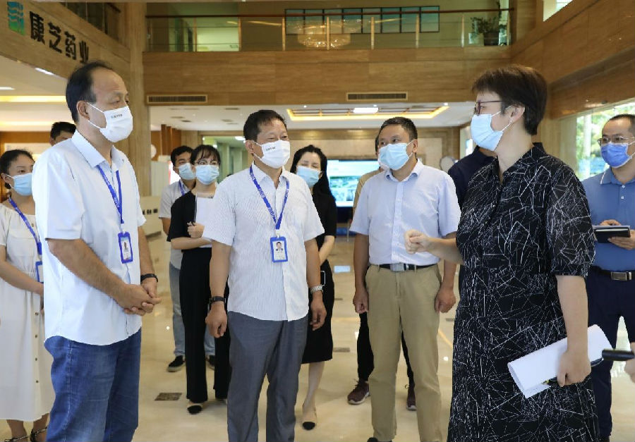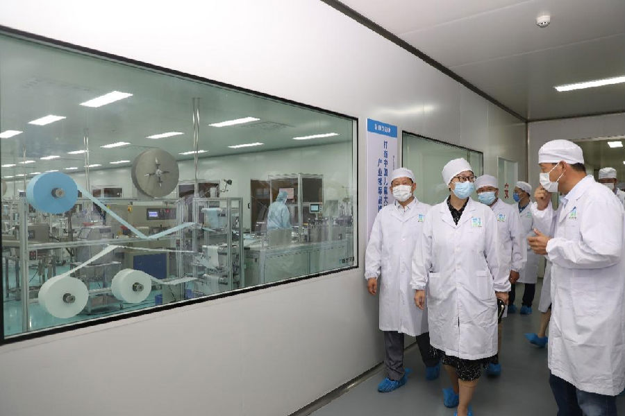 隨后,海南省藥監(jiān)局朱寧局長(zhǎng)一行在我司領(lǐng)導(dǎo)的陪同下,參觀了康芝藥業(yè)的醫(yī)用防護(hù)口罩生產(chǎn)車(chē)間,康芝藥業(yè)海南基地總經(jīng)理高洪常現(xiàn)場(chǎng)匯報(bào)了康芝藥業(yè)的口罩產(chǎn)品情況、海南(國(guó)際)醫(yī)療防護(hù)用品生產(chǎn)基地項(xiàng)目情況以及本次疫情期間康芝藥業(yè)踐行的“疫情防控與安全生產(chǎn)兩頭抓”的閉環(huán)生產(chǎn)管理辦法。朱寧局長(zhǎng)對(duì)康芝藥業(yè)在疫情期間積極履行社會(huì)責(zé)任、擴(kuò)充產(chǎn)能、申報(bào)創(chuàng)新產(chǎn)品與服務(wù)、服務(wù)疫情防控大局等方面給予了充分肯定。