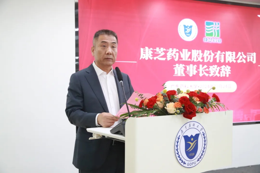 在開場(chǎng)致辭中,劉晟書記代表學(xué)校向洪江游董事長(zhǎng)及康芝藥業(yè)慷慨捐贈(zèng)、鼎力支持母校教育事業(yè)發(fā)展的義舉表達(dá)了誠(chéng)摯的感謝。劉晟書記表示,洪江游校友對(duì)母校的深情厚誼,令人感動(dòng);康芝藥業(yè)三十年的發(fā)展進(jìn)步,令人鼓舞。學(xué)校高度重視與康芝藥業(yè)的產(chǎn)教協(xié)同,會(huì)發(fā)揮好“康芝多媒體廳”的育人功能,將其建設(shè)成為學(xué)校“大思政課”精品實(shí)踐項(xiàng)目孵化、創(chuàng)新創(chuàng)業(yè)項(xiàng)目孵化、第二課堂實(shí)訓(xùn)、育人成果展示的重要場(chǎng)地,推動(dòng)產(chǎn)教融合、科教融匯高質(zhì)量發(fā)展。
