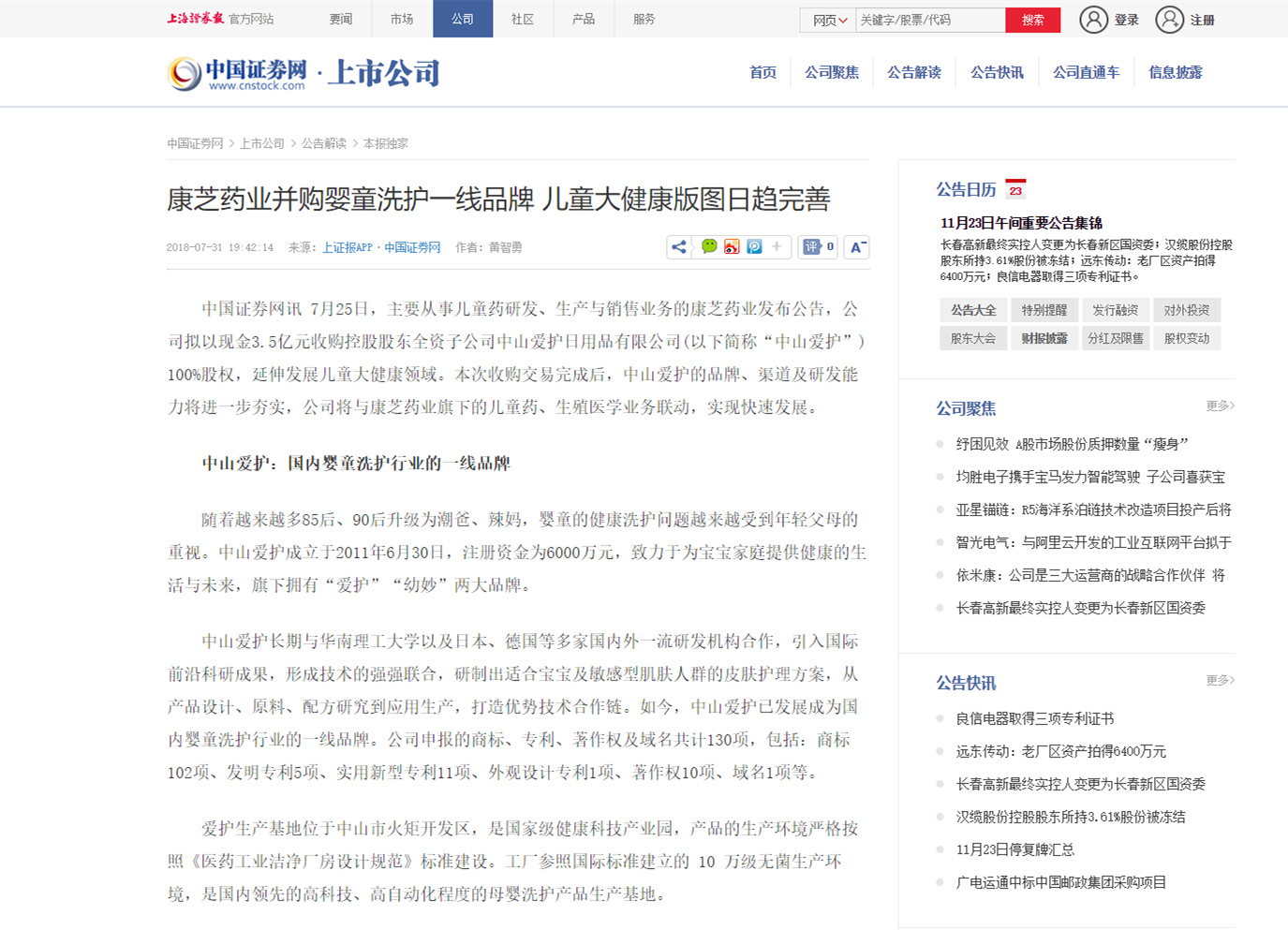 查看詳情7月25日,康芝藥業(yè)發(fā)布公告,公司擬以現(xiàn)金3.5億元收購(gòu)控股股東全資子公司中山愛護(hù)日用品有限公司100%股權(quán),延伸發(fā)展兒童大健康領(lǐng)域。